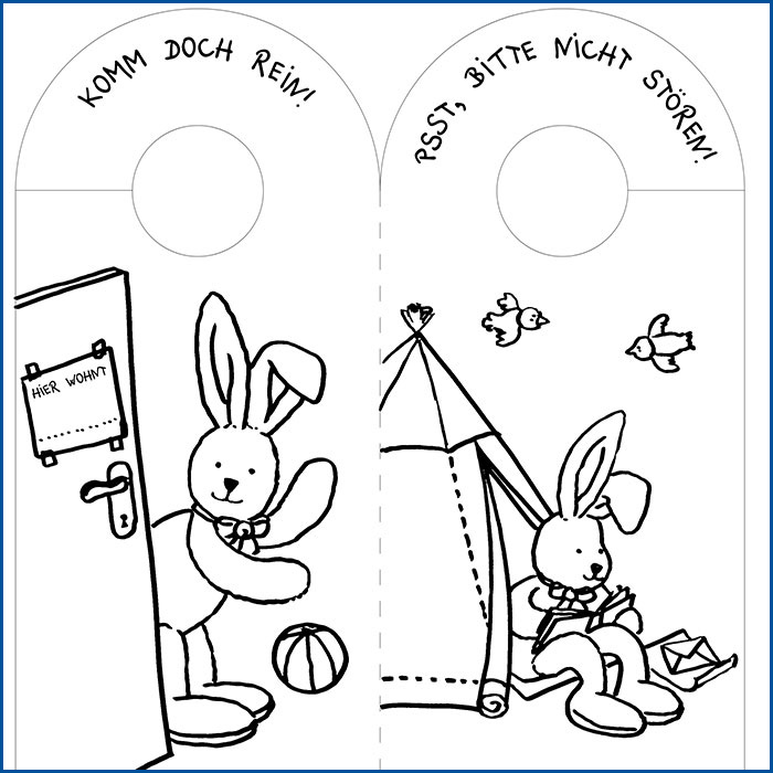 Male die Bastelvorlage bunt aus und hänge das fertige Schild an Deine Kinderzimmertür.
