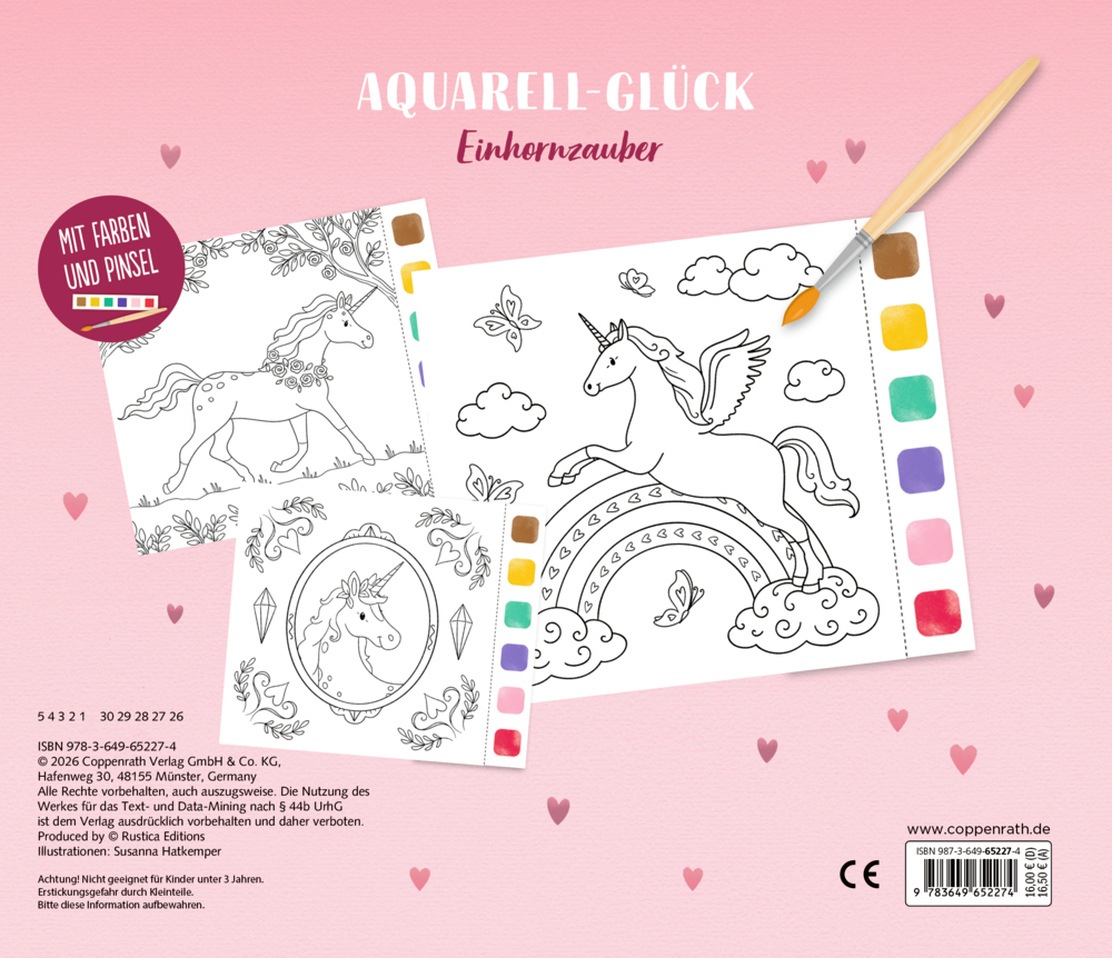 - Beigaben: mit 6 Aquarellfarben und Pinsel