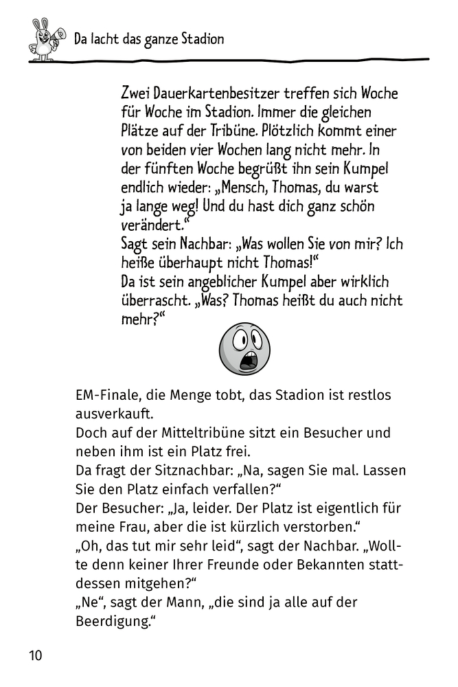 Ein echter Volltreffer für Fußballfans: Dieses kompakte Buch hält auf 160 Seiten über 500 Witze und lustige Originalzitate berühmter Fußballprofis zum Schlapplachen für Kinder ab 8 Jahren bereit. Ob im Stadion, in der Schule oder zu Hause – dieser Spaß geht in die Verlängerung.