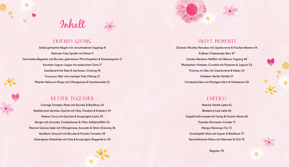 Kochen, lachen, genießen – A table for two macht aus gemeinsamen Mahlzeiten besondere Momente. Ob aromatisches Peanut-Curry, mediterrane Gemüsequiche, verführerisches Himbeer-Vanille-Parfait oder prickelnder Mango-Maracuja-Fizz – dieses liebevoll gestaltete Kochbuch bietet 28 vielseitige Rezepte für Zweisamkeit, Freunde oder kleine Feiern. Mit farbenfrohen Illustrationen und wunderschönen Fotos ausgestattet, ist es ein echter Genuss für alle Sinne und perfekt für ein unvergessliches Beisammensein mit den liebsten Menschen.
