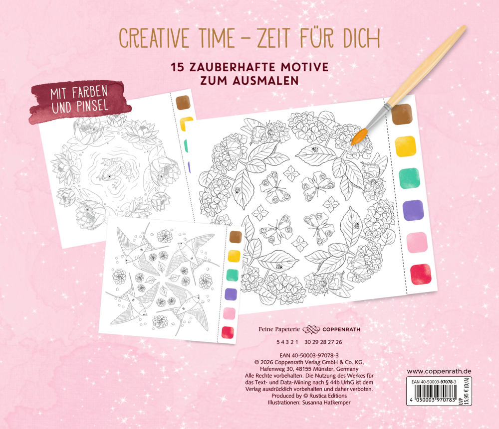 - Beigaben: mit 6 Aquarellfarben und Pinsel