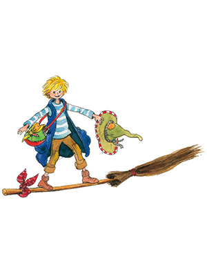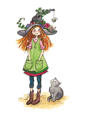 Das ist Flora Floribunda, genannt Flora Flitzebesen. Die freche Hexe ist auf ihrem Besen die schnellste Fliegerin der ganzen Stadt und immer zu einem Abenteuer bereit. Ihre ständigen Begleiter sind der kuschelige Kater Kringel und die sprechende Spinne Linne, die in Floras zerlöcherten Hexenhut wohnt. Wenn Flora mal wieder zu übermütig wird, muss Linne sie manchmal etwas bremsen. Flora liebt alle Tiere und wohnt zusammen mit ihrer Mama und ihrer Omimi im Grasdachviertel von Hexenrosenstädtchen.