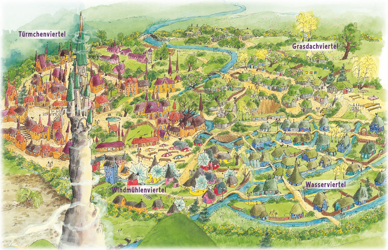 Im Hexenrosental liegt das Hexenrosenstädtchen, in dem Flora Flitzebesen und ihre Freunde leben. Hier kannst du das Hexenrosenstädtchen mit seinen Vierteln näher kennenlernen: