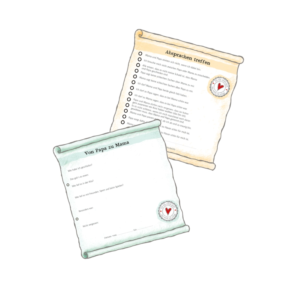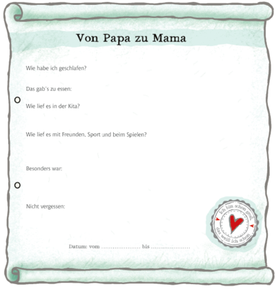 Hier findet ihr den Zettel für das eigene Tagebuch sowie den eigenen Absprache-Zettel zwischen Mama und Papa zum kostenlosen Download.