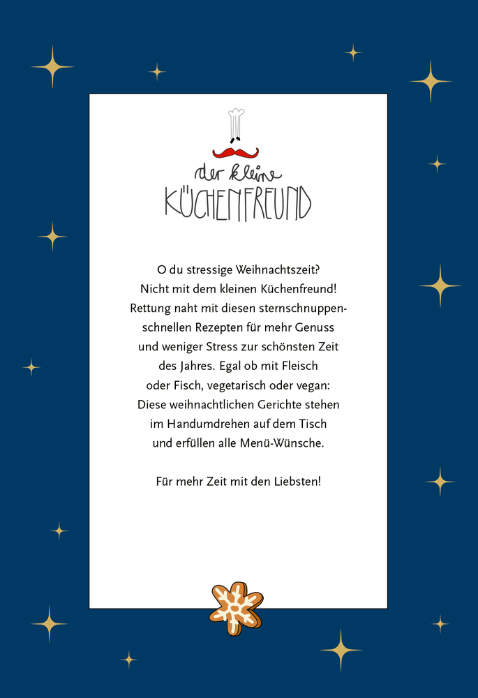 O du stressige Weihnachtszeit? Nicht mit dem kleinen Küchenfreund! Rettung naht mit diesen sternschnuppenschnellen Rezepten für mehr Genuss und weniger Stress zur schönsten Zeit des Jahres. Egal ob mit Fleisch oder Fisch, vegetarisch oder vegan: Diese weihnachtlichen Gerichte stehen im Handumdrehen auf dem Tisch und erfüllen alle Menü-Wünsche. Für mehr Zeit mit den Liebsten!