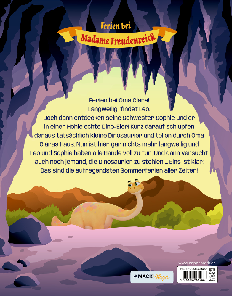 Die 10-jährige Sophie und ihr Bruder Leo erleben bei Oma Clara den wildesten Sommer ihres Lebens. Statt Langeweile erwarten sie Verfolgungsjagden, ein mysteriöses Ei, ein vermisster Opa und schlagfertige Dinosaurier. Ein Vorlesebuch voller Humor, Herz, spannender Rätsel und Intrigen – ideal für kleine Dino-Fans. Aufbauend auf der beliebten Bilderbuchreihe Dinosaurier in Omas Garten und der Europa-Park-Attraktion bietet es ein verrücktes Abenteuer für Kinder ab 6 Jahren.