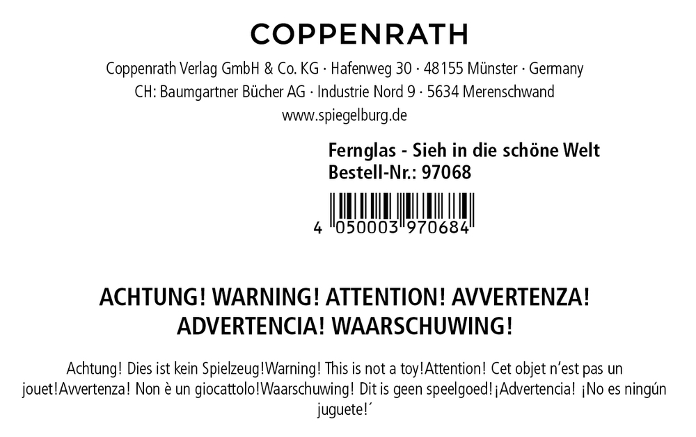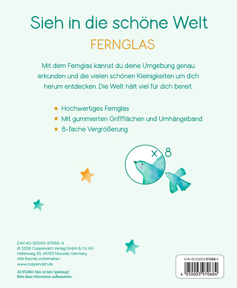 - Beigaben: Fernglas aus Kunststoff / in Geschenkverpackung / ca. 6,5 x 9 x 3,5 cm