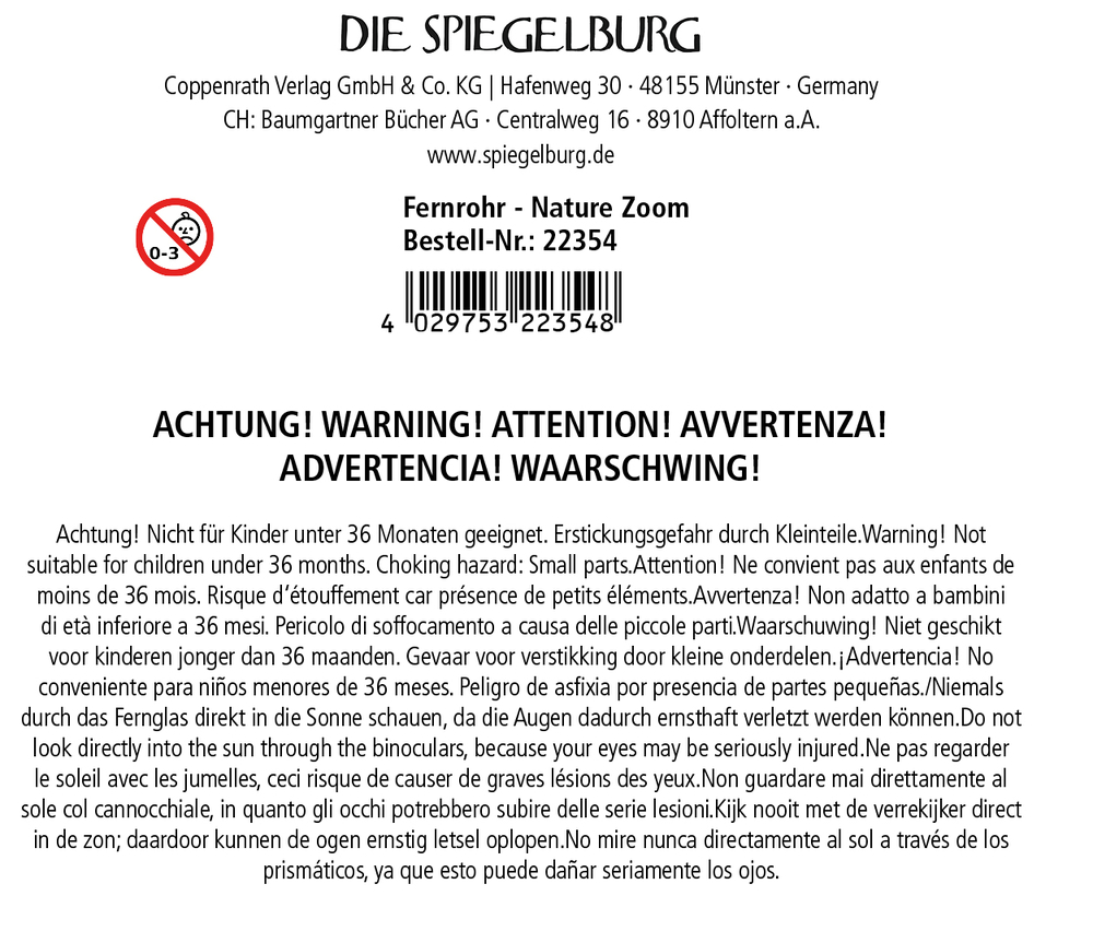 - Warnhinweis: Niemals durch das Fernglas direkt in die Sonne schauen, da die Augen dadurch ernsthaft verletzt werden können.