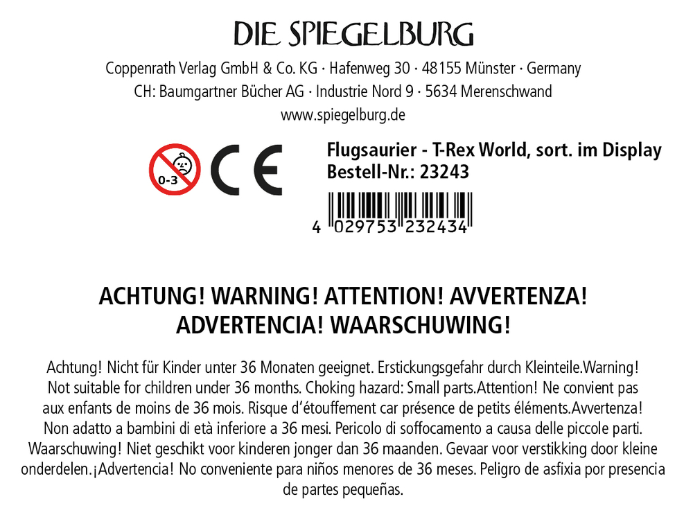 - Warnhinweis: Achtung! Nicht für Kinder unter 36 Monaten geeignet. Erstickungsgefahr durch Kleinteile.