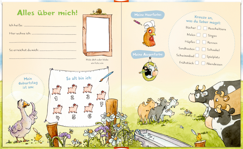 Ob Huhn, Kuh oder Traktor – dieses Freundebuch bringt den Bauernhof direkt ins Kinderzimmer. 96 Seiten voller bunter Illustrationen und liebevoller Details laden Kinder ein, sich auszutauschen und Erinnerungen festzuhalten. Ein fröhlicher Begleiter für die ersten Freundschaften!