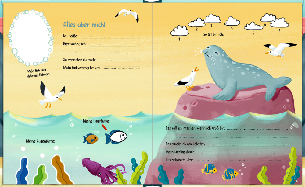 Freundebuch Meerestiere für Kindergarten, Kita und Grundschule