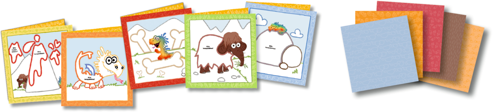 - Beigaben: Pappumschlag (23 x 23 cm) mit 5 vorgestanzten Klappkarten (21 x 21 cm, 4-fbg.) und 5 Bögen selbstklebendem Buntpapier