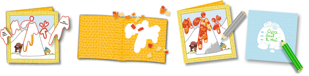 Inhalt: 5 Klappkarten, selbstklebendes Buntpapier