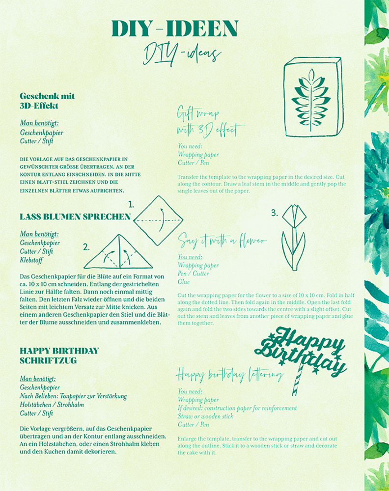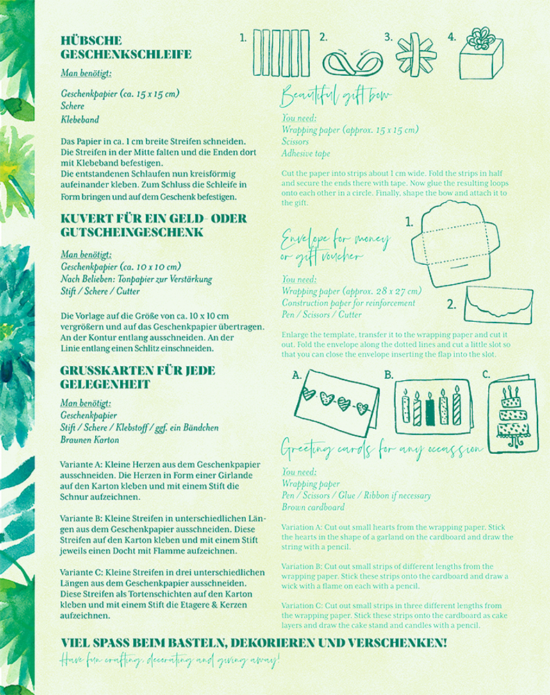 - Beigaben: 10 Geschenkpapierbogen in Broschur mit 2 Seiten DIY-Ideen und Geschenkanhängern / Boschur mit Goldfolie / Bogen: ca. 50 x 70 cm / Broschur: ca. 20 x 25 cm