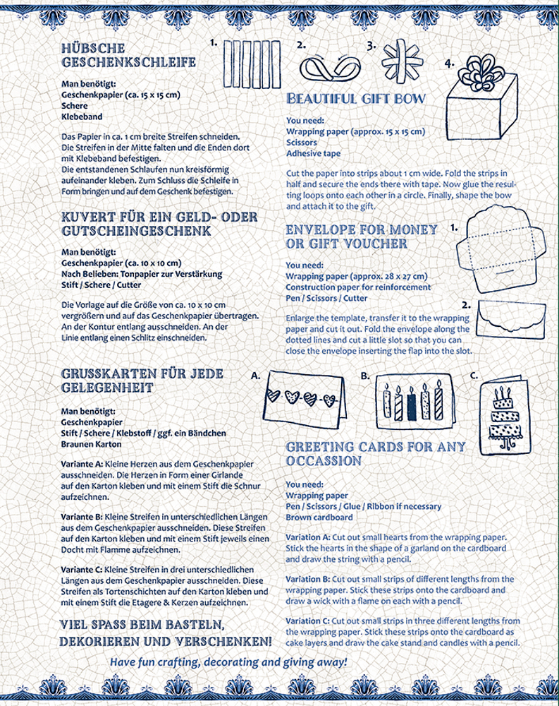 - Beigaben: 10 Geschenkpapierbogen in Broschur mit 2 Seiten DIY-Ideen und Geschenkanhängern / Boschur mit Goldfolie / Bogen: ca. 50 x 70 cm / Broschur: ca. 20 x 25 cm