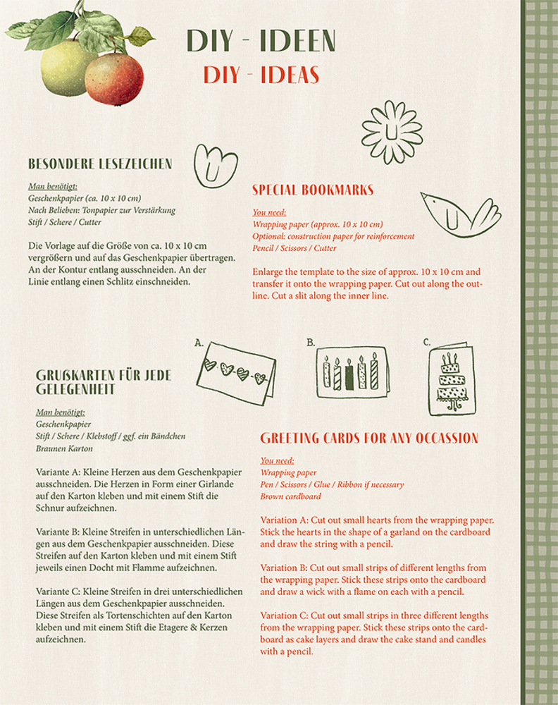 - Beigaben: 10 Geschenkpapierbogen in Broschur mit 2 Seiten DIY-Ideen und Geschenkanhängern / Broschur mit Goldfolie / Bogen: ca. 50 x 70 cm / Broschur: ca. 20 x 25 cm