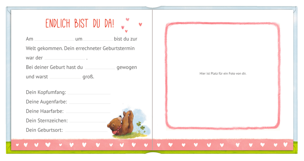 - Einband: mit Folie / Tasche 12,5 x 10 x 3 cm / Plüsch-Bärenkopf-Rassel ca. 11 x 11 x 3,5 cm / Buch 32 S.