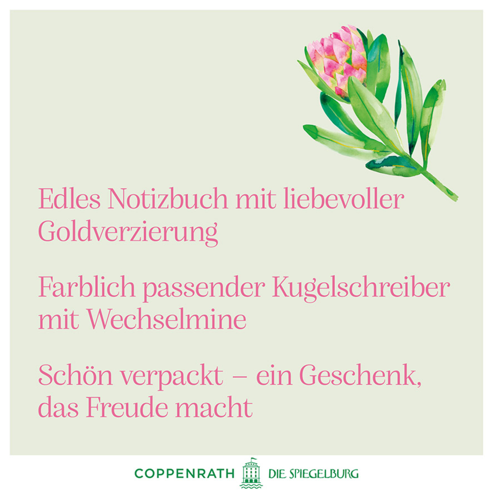 - Beigaben: Geschenkset mit Notizbuch (176 S. liniert) und Kugelschreiber / mit Goldfolie / Verpackung mit Banderole