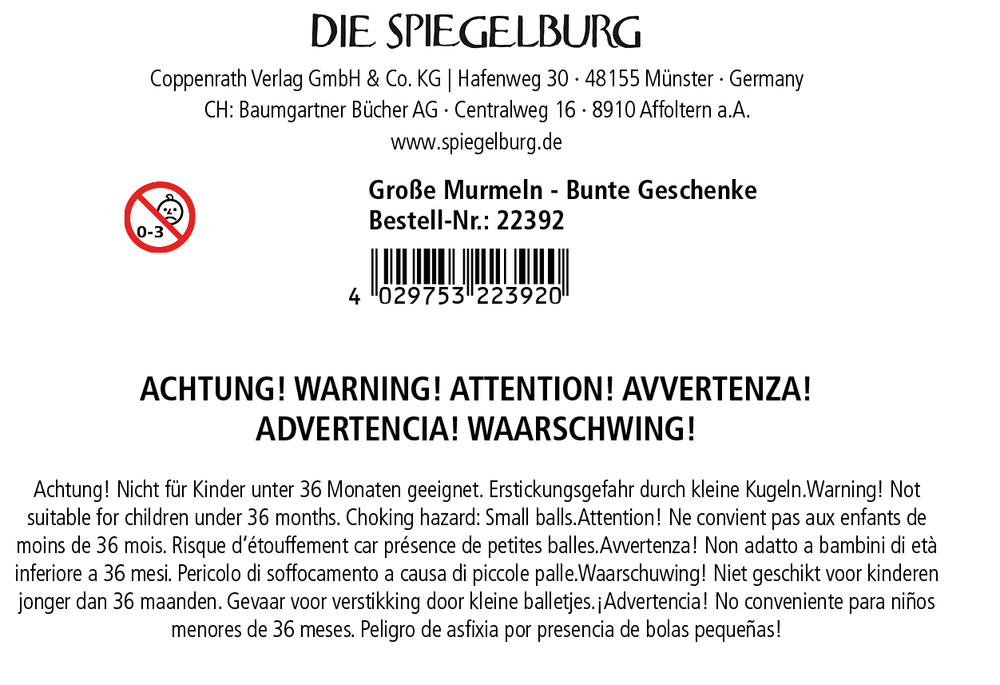 - Warnhinweis: Achtung! Nicht für Kinder unter 36 Monaten geeignet. Erstickungsgefahr durch kleine Kugeln.