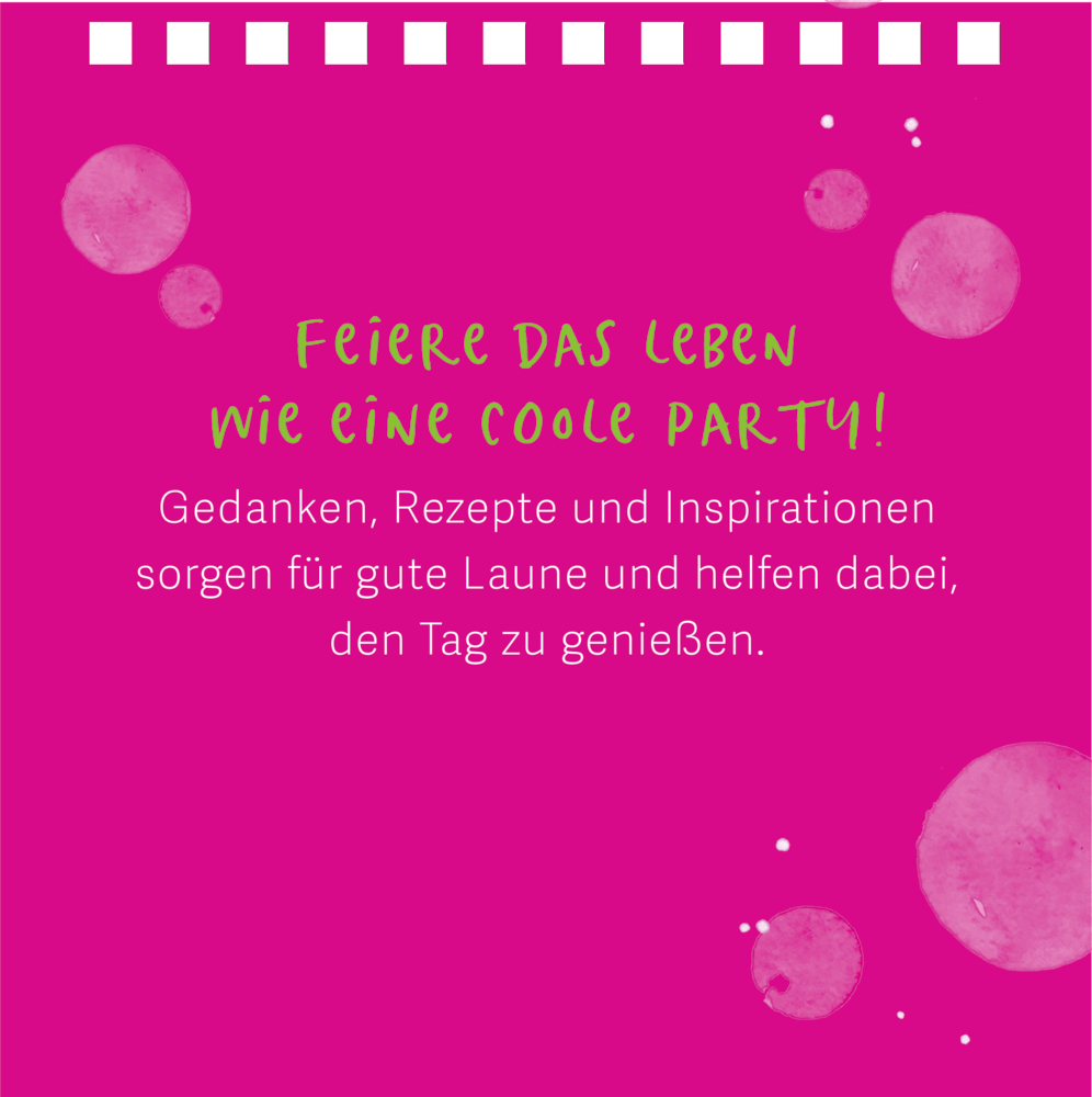 Feier das Leben wie eine coole Party! Und dieses Aufstellbuch ist dabei behilflich: Leichte Sprüche, leckere Rezepte und eine frische Gestaltung sind die Mittel der Wahl, um für gute Laune zu sorgen und den Tag zu genießen. Das perfekte Geschenk für Junggebliebene und solche, die es werden wollen – nicht nur zum Geburtstag!