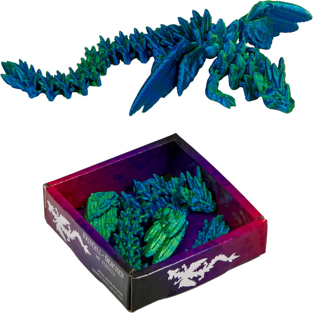 grün/blau, Kristall-Drache mit Flügeln - Kristalltier