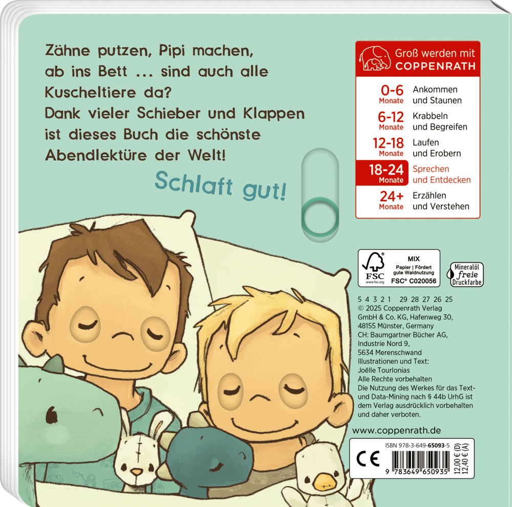 „Zähne putzen, Pipi machen, ab ins Bett … Sind auch alle Kuscheltiere da?“ – Ein interaktives Pappbilderbuch für das perfekte Abendritual!