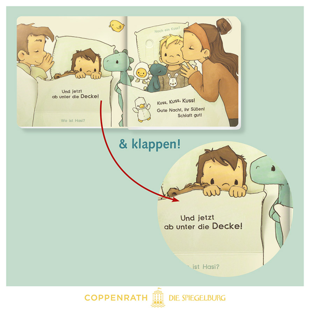 Und wenn Mama und Papa mal zu müde zum Vorlesen sind, können kleine Leserinnen und Leser selbst aktiv werden und auf jeder Seite nach Hasi suchen.