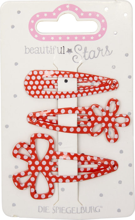 Diesen gepunkteten Haarclips kann niemand widerstehen! Das Set besteht aus 3 Haarspangen - für vielfältige Frisuren. Eine zauberhafte Kleinigkeit (nicht nur) fürs Osternest. In 2 Designs (rot oder rosa) erhältlich.
