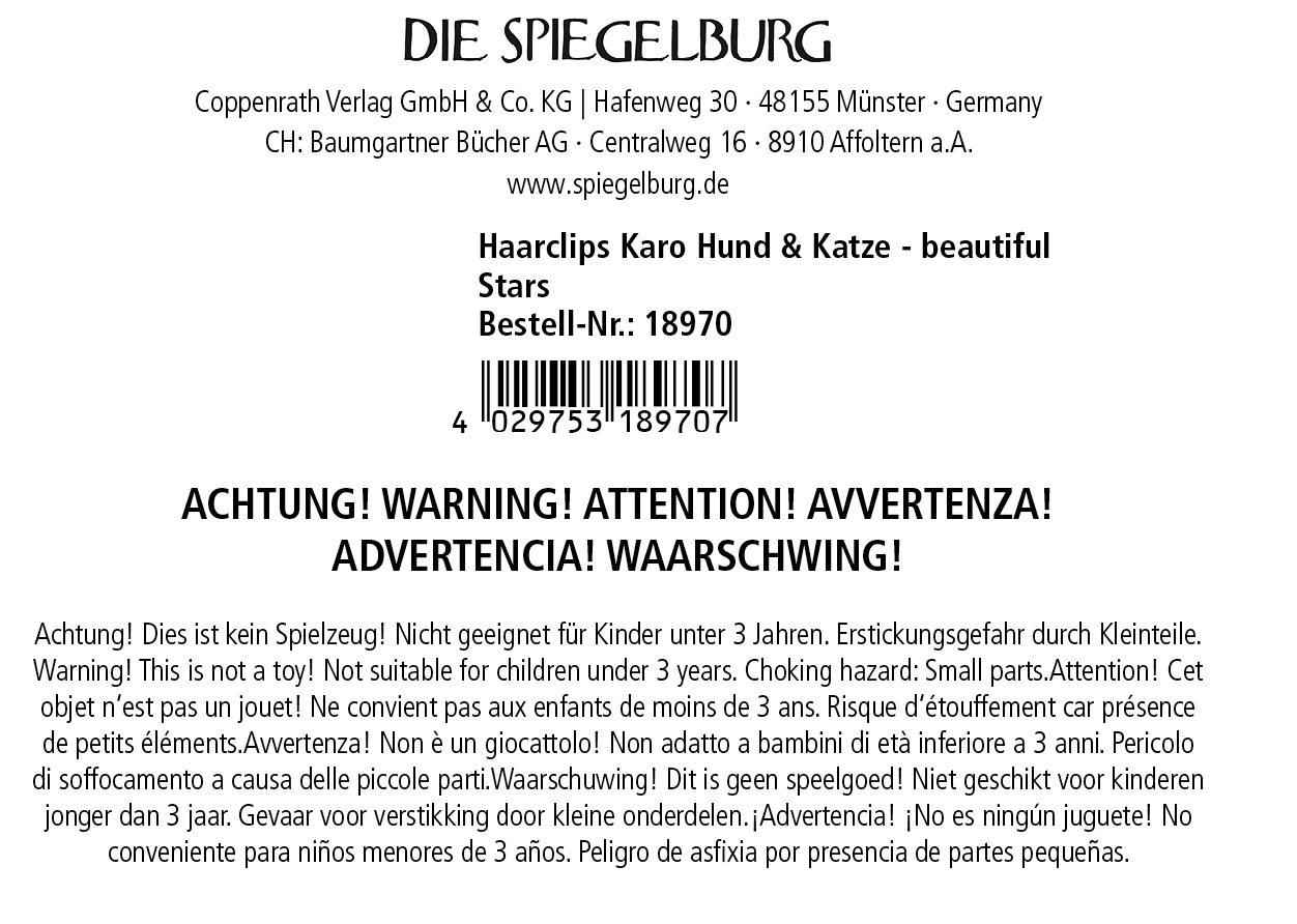 Haarclips Karo Hund oder Katze - beautiful Stars