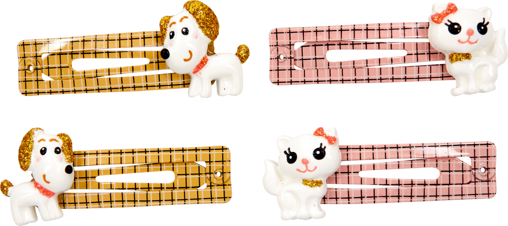 Diesen tierischen Haarclips mit Glitzer kann niemand widerstehen! Das Set besteht aus 2 Haarspangen mit Hunde- oder Katzenmotiv. Für vielfältige Frisuren. In 2 Designs erhältlich.