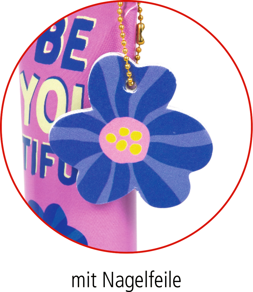Die Handcreme I love myself von Die Spiegelburg kombiniert Pflege und Style in einem Set. Die Handcreme (ca. 6 x 14 cm, 60 ml) duftet zart nach White Tea und wird von einer praktischen Nagelfeile im Blumenformat (ca. 5 x 5 cm) begleitet. Das knallige, farbenfrohe Design mit Blumenmotiv und dem Schriftzug „Be YOU tiful“ macht die Tube zu einem schönen Blickfang – ein kleines Statement für Selfcare und gute Laune.