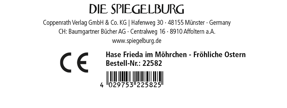 Der kleine Hase Frieda von "Die Spiegelburg" sucht ein neues Zuhause! Dieses niedliche Plüschtier erobert Kinderherzen im Sturm. Der kleine Hase kommt in einer kuschelweichen Möhre von ca. 20 cm - zum Spielen, Kuscheln und Liebhaben! Eine zauberhafte Idee für das Osternest. Schonwäsche empfohlen.