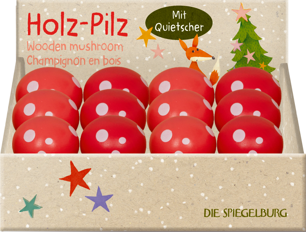 Kleiner Holz-Pilz zum Spielen und Dekorieren – mit lustigem Quietscher. Eine zauberhafte Kleinigkeit für den Adventskalender oder Nikolausstiefel.