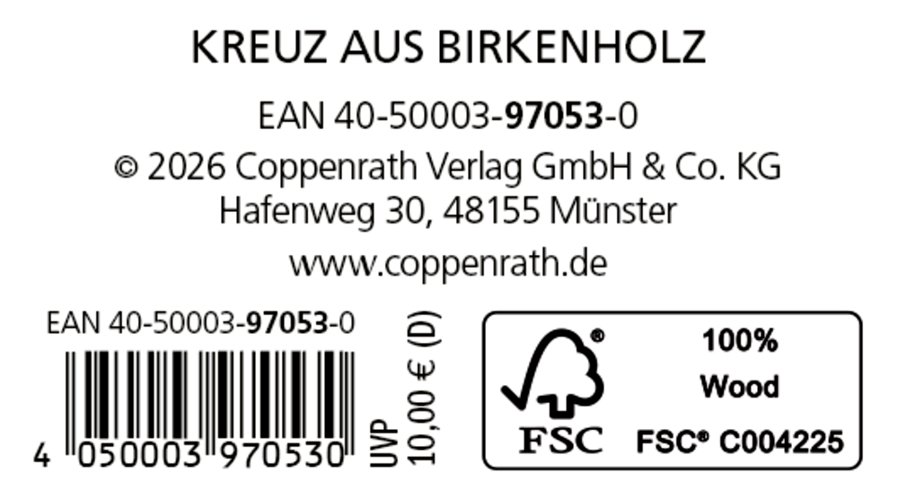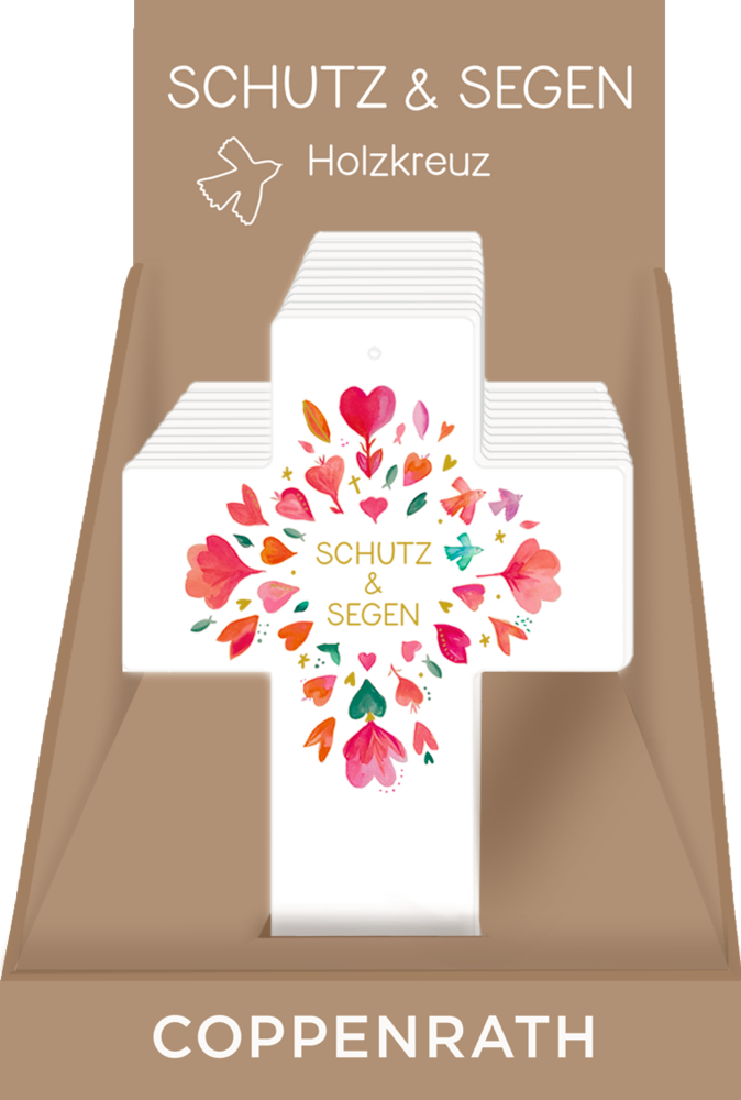 - Beigaben: Holzkreuz mit farbigem Aufdruck und Goldfolie, ca. 8,4 x 10,7 cm / Aufhängeloch