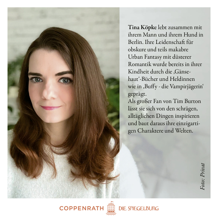 Tina Köpke lebt zusammen mit ihrem Mann und ihrem Hund in Berlin. Ihre Leidenschaft für obskure und teils makabre Urban Fantasy mit düsterer Romantik wurde bereits in ihrer Kindheit durch die 'Gänsehaut'-Bücher und Heldinnen wie in 'Buffy - die Vampirjägerin' geprägt. Als großer Fan von Tim Burton lässt sie sich von den schrägen, alltäglichen Dingen inspirieren und baut daraus ihre einzigartigen Charaktere und Welten.