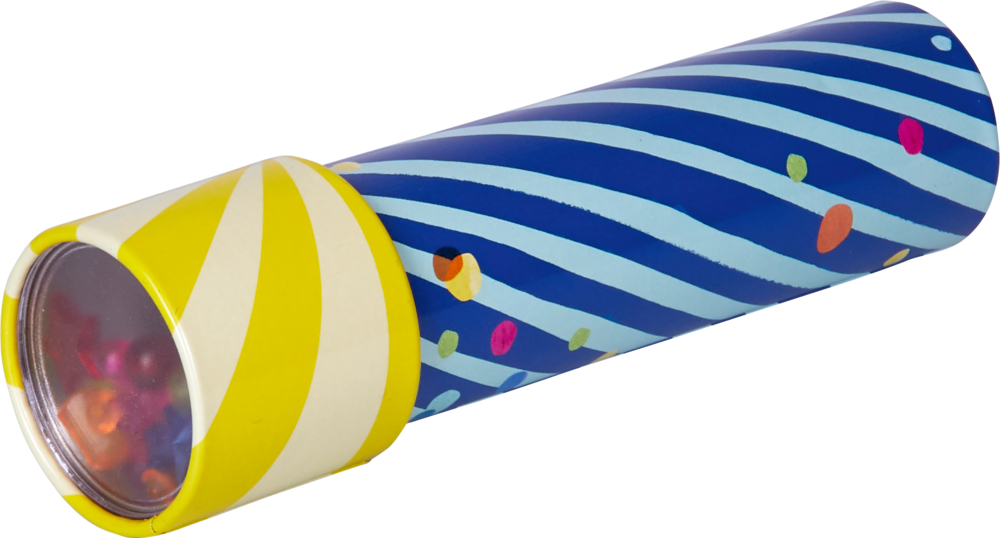Durchschauen, drehen und in eine farbenfrohe Welt abtauchen! Kunterbuntes Kaleidoskop aus Metall, das Kinderaugen zum Staunen bringt. In 3 Designs.