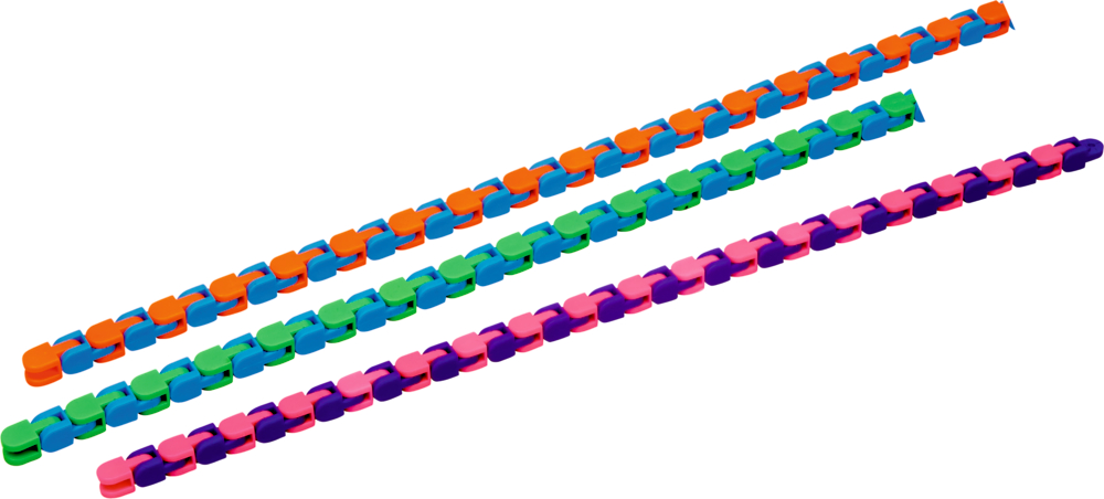 Bunte Geschenke für Kinder: Diese langgliedrige Kette mit 36 unterschiedlich farbigen Elementen lässt sich in verschiedene Formen biegen. Das macht Spaß und regt die kindliche Fantasie an! Länge ca. 41 cm. In 3 Designs erhältlich.