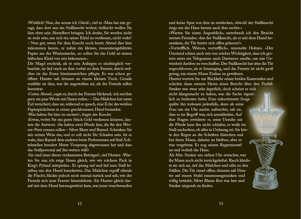 „Sherlock Holmes – Die Memoiren" beinhaltet elf der bekanntesten Erzählungen über den berühmten Detektiv und seinen Partner Dr. Watson. Im London des 19. Jahrhunderts löst das Ermittler-Duo legendäre Kriminalfälle mit kombinatorischem Scharfsinn und unkonventionellen Methoden. Der Band gipfelt in der atemlosen Verfolgungsjagd von Sherlock Holmes und seinem berühmten Erzfeind Professor Moriarty quer durch Europa mit dem legendären Aufeinandertreffen am Reichenbachfall. Die detailverliebte Gestaltung, aufwendige Illustrationen und zahlreiche zeitgenössische Beilagen machen diese Ausgabe zu einem einzigartigen Leseerlebnis!