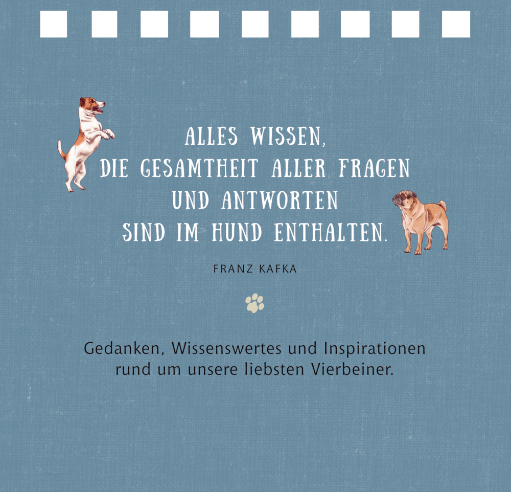 Dieses dekorative Spiralaufstellbuch zeigt all die schönen Momente und Freuden auf, die wir mit unseren liebsten Vierbeinern erleben können. Neben Inspirationen für Spiele und Rezepten für das neue Lieblingsleckerli gibt es die schönsten Aphorismen sowie viel Wissenswertes über Hunde zu entdecken. Mit seinem schönen Design ist dies das perfekte Geschenk für alle Hundefreunde.