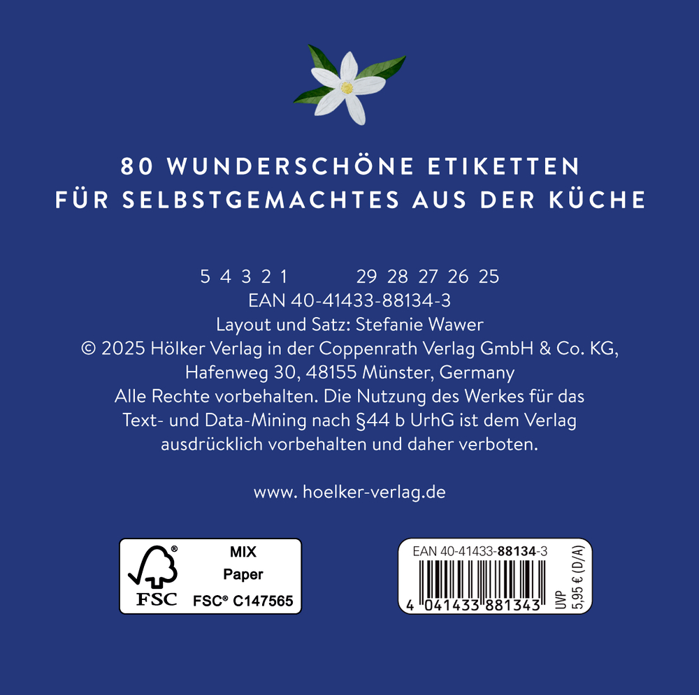 - Beigaben: Klappbüchlein mit 80 selbstklebenden Etiketten / Cover mit Spotlack / ca. 10,5 x 10,5 cm