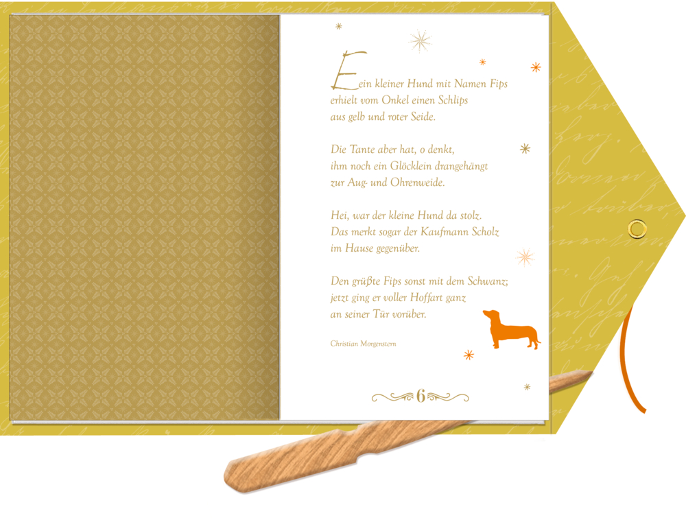 Öffnen Sie mit dem edlen Brieföffner aus Holz jeden Tag eine Seite des Buches wie einen Brief und stimmen Sie sich mit den literarischen und warmherzigen Texten über den besten Freund des Menschen auf das Weihnachtsfest ein.