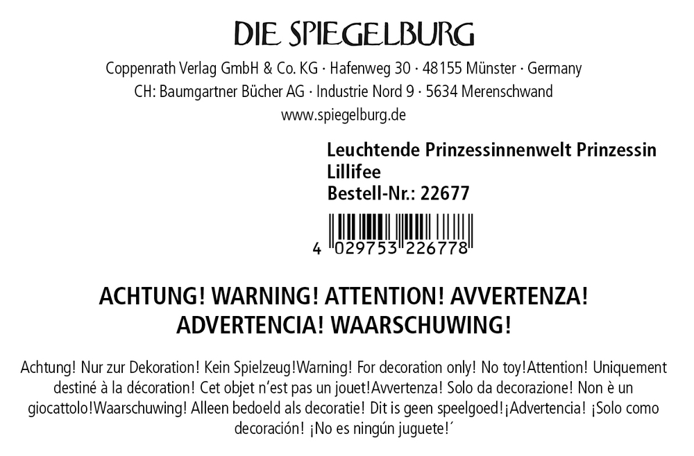 - Warnhinweis: Achtung! Nur zur Dekoration! Kein Spielzeug!