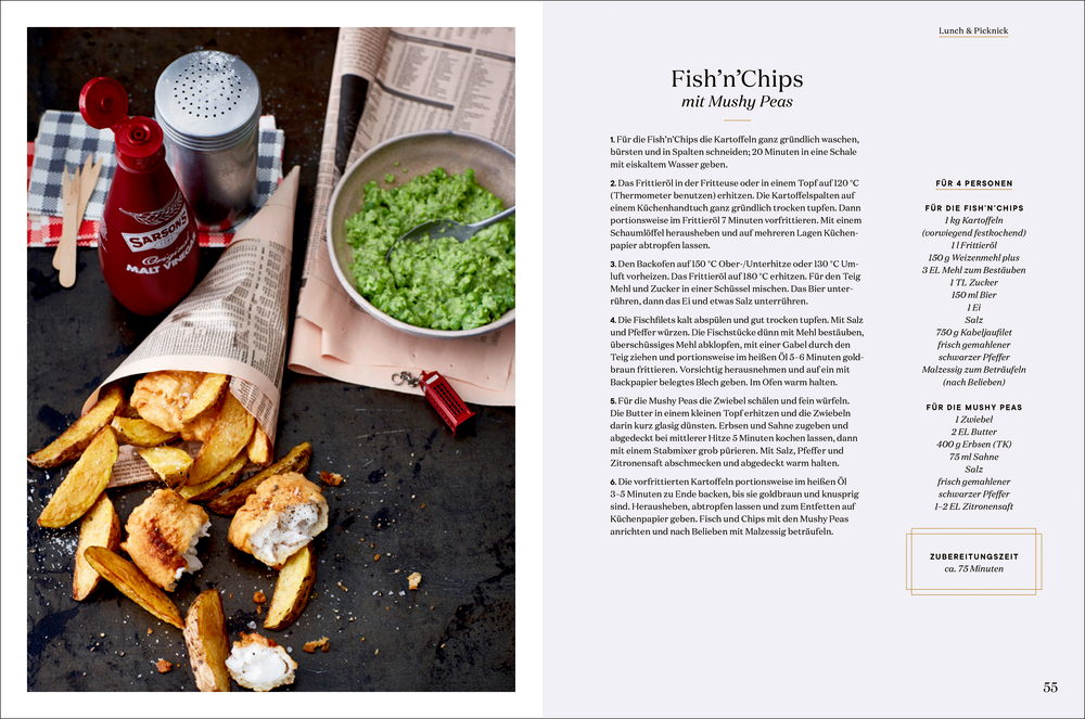 Hand in Hand durch die königlichen Gärten spazieren, das bunte Treiben in Camden Town genießen, Sterne gucken auf dem Primrose Hill oder ein inniger Kuss vor der wohl bekanntesten blauen Tür in Notting Hill – lassen Sie sich verzaubern von der Metropole an der Themse! Holen Sie sich mit diesem Kochbuch das unverwechselbare London-Flair in Ihre Küche! Ob ein gemeinsames Full English Breakfast am Morgen, ein Sandwich-Picknick im Park, Scones mit Clotted Cream und Erdbeermarmelade zur Tea Time oder ein Gin Tonic im Pub – 50 beliebte Klassiker der britischen Küche erwarten Sie! Entdecken Sie außerdem die romantischsten Orte der Stadt und die schönsten Liebesgeschichten aus Literatur, Film und dem Königshaus. Besuchen Sie Bridget Jones‘ Appartement in Borough Market und stellen Sie sich vor, wie Sie mit Mr. Darcy blaue Suppe kochen, lesen Sie die liebevollen Zeilen von Viginia Woolf an Vita Sackville-West und schwelgen Sie in einem von Shakespeares Liebesgedichten. Und spätestens, wenn Sie es sich mit einer Tasse Earl Grey und buttrigem Shortbread auf dem Sofa gemütlich machen, sind auch Sie verliebt in London!