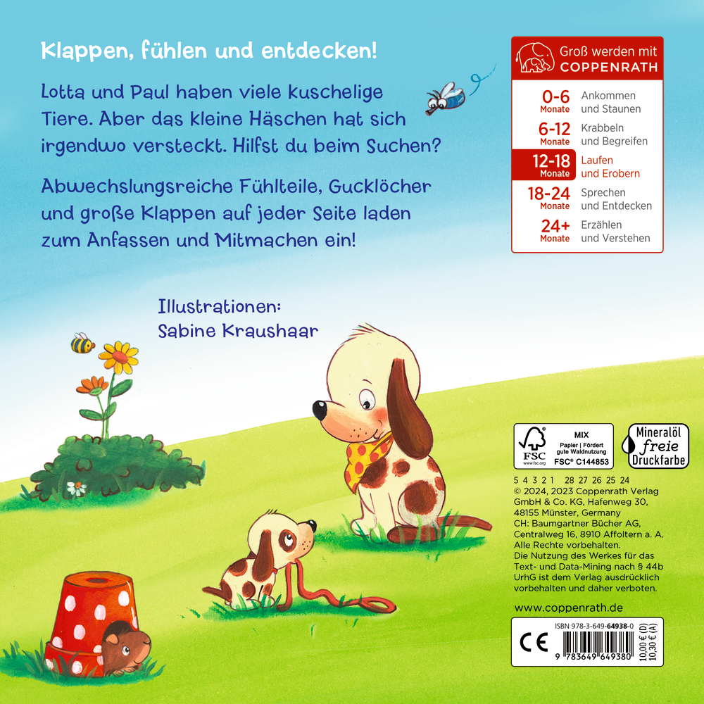 - Ausstattung: mit Pappklappen, Filzklappe und Fühlelementen