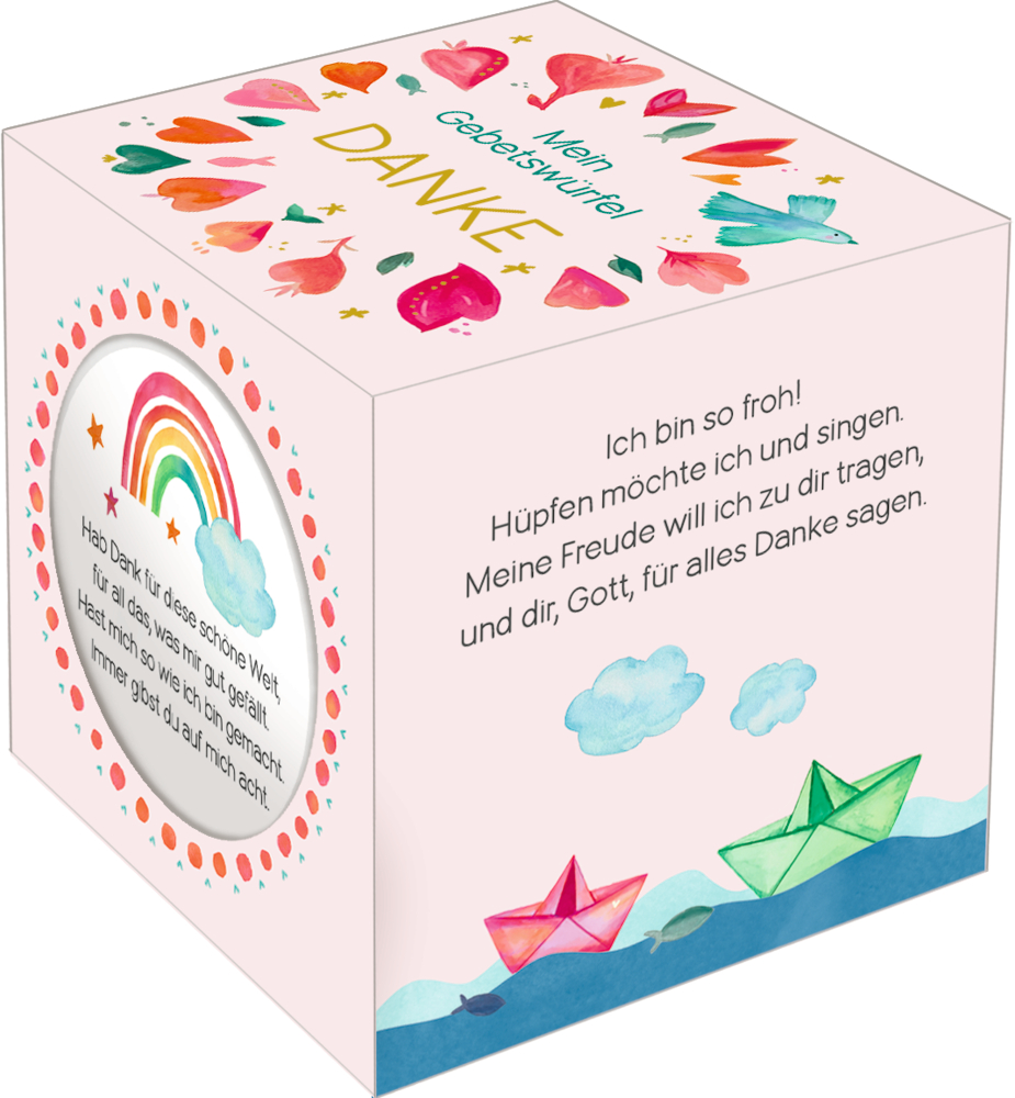 Der Gebetswürfel „Danke" hilft Kindern, Gott für die schönen Dinge im Leben zu danken und eine positive Sichtweise zu entwickeln. Auf jeder der sechs Würfelseiten befindet sich ein liebevoll illustriertes Dankgebet, das Kinder dazu ermutigt, ihre Dankbarkeit bewusst wahrzunehmen. Ein wertvolles Geschenk für Kita, Grundschule, Religionsunterricht oder für zu Hause.