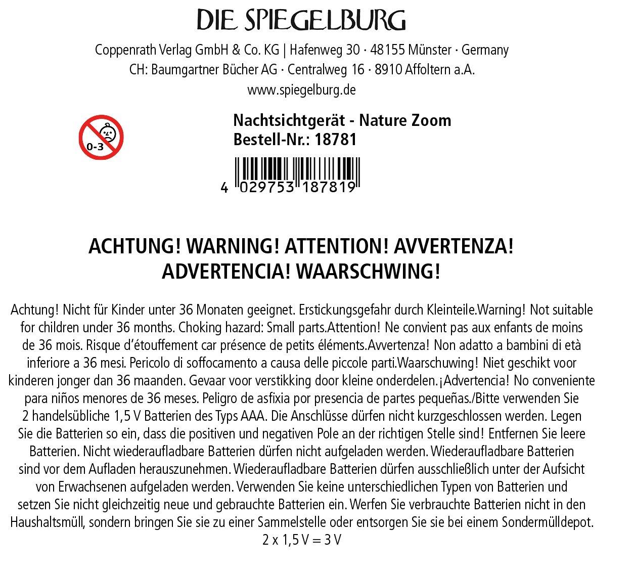 - Warnhinweis: Achtung! Nicht für Kinder unter 36 Monaten geeignet. Erstickungsgefahr durch Kleinteile.
