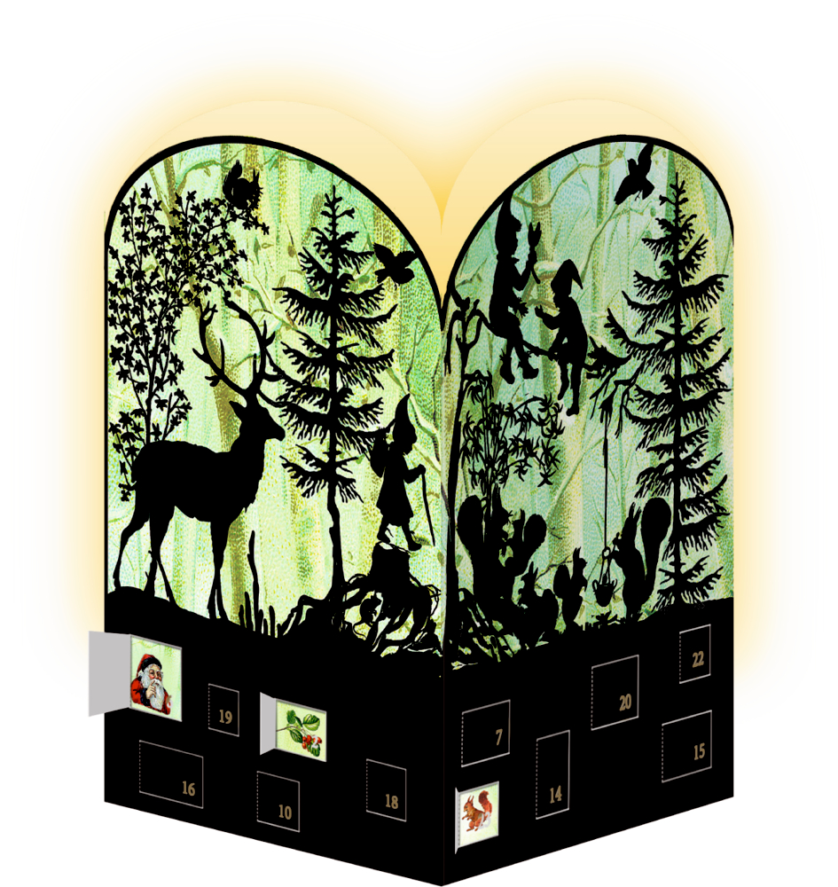 Das ist ein superschöner, total dekorativer Mini-Adventskalender, der gleichzeitig nostalgisch, aber nicht kitschig ist. Lässt sich schön verschicken und aufstellen: Tolle Farben, tolles Licht! Am besten gefällt mir das grüne Waldmotiv.