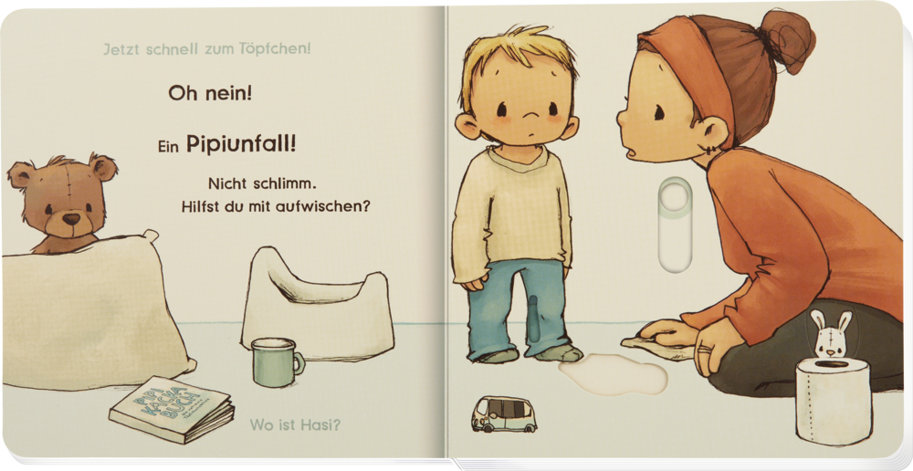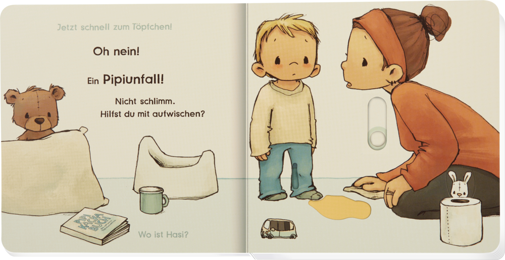 Das Essen kommt oben rein und unten wieder raus. Dank vieler Schieber und Klappen ist dieses besondere Pappbilderbuch die anschaulichste Töpfchenlektüre der Welt!