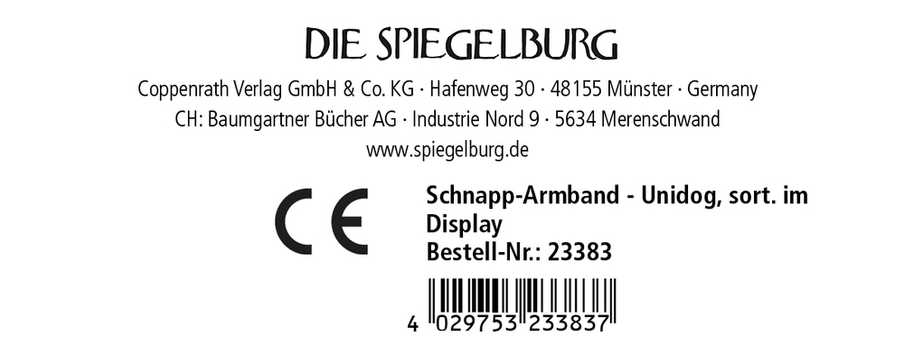 Das Schnapp-Armband Unidog von Die Spiegelburg kombiniert kuscheliges Plüschdesign mit einem überraschenden Schnapp-Effekt. Der pastellfarbene Unidog – eine bezaubernde Mischung aus Hund und Einhorn – sorgt mit seinem fröhlichen Blick für gute Laune. Einfach leicht gegen das Handgelenk tippen und schon rollt sich das flexible Band wie von Zauberhand darum. Ein fröhliches Accessoire für Spiel, Spaß und unterwegs. In 4 Designs erhältlich. Oberfläche abwaschbar.