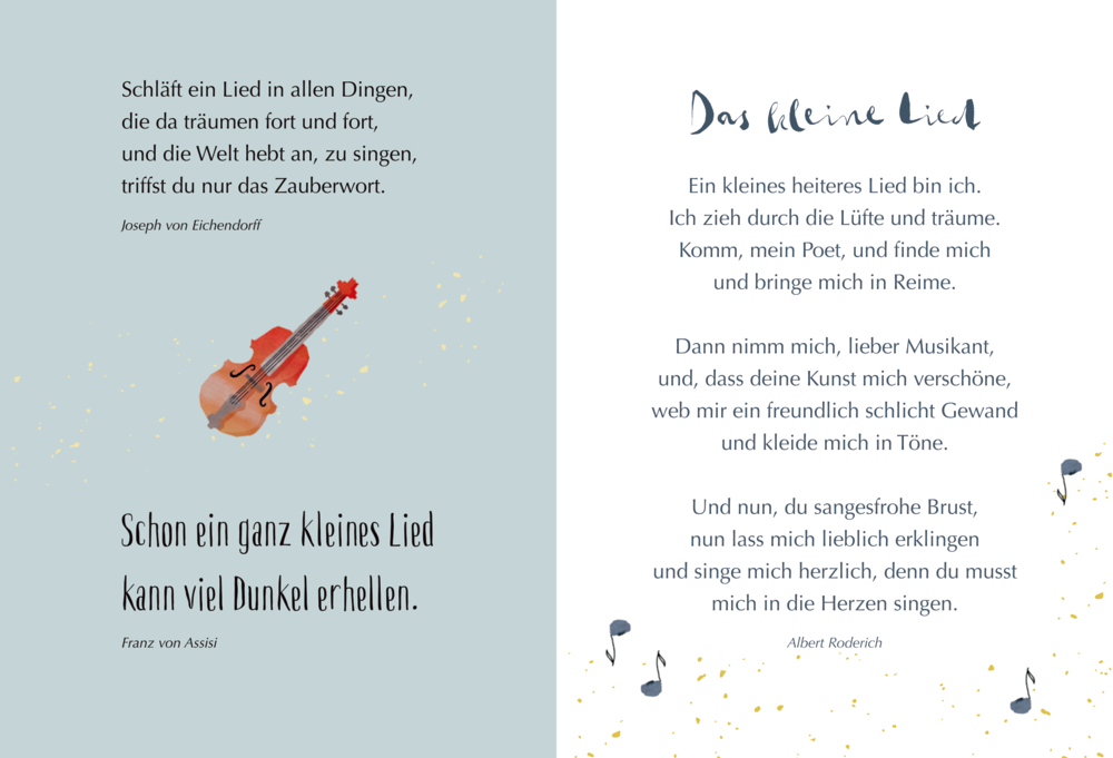 Für Musizierende, Chormitglieder und Fans der schönen Klänge aller Stilrichtungen ist dieses Büchlein mit Gedichten und Gedanken über die Faszination der Musik ein liebevolles kleines Geschenk zu vielen Anlässen oder einfach mal so.